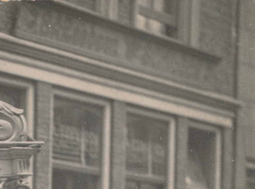 op deze uiterst zeldzame opname staat rechts op het gebouw een naam