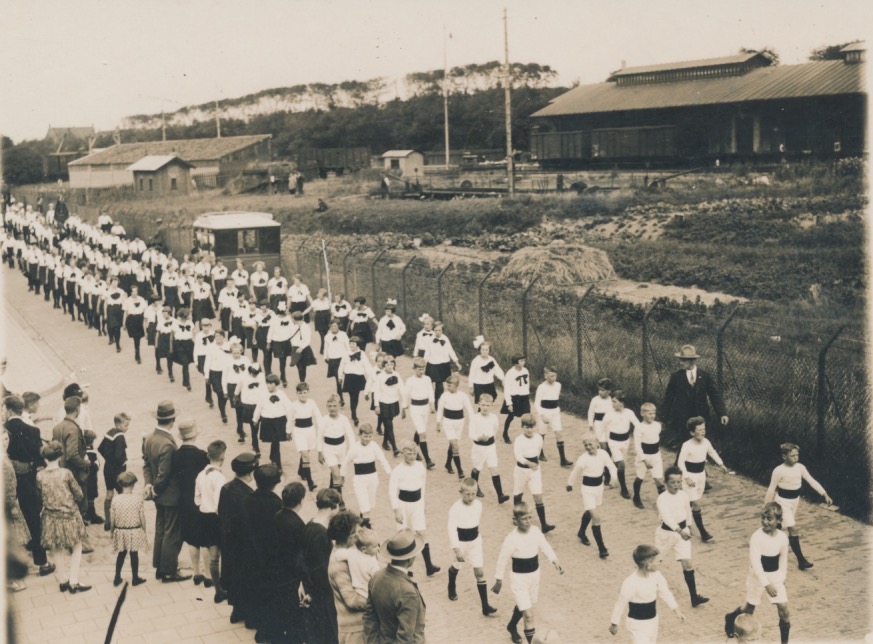 7011 optocht met jongens en meisjes in uniform