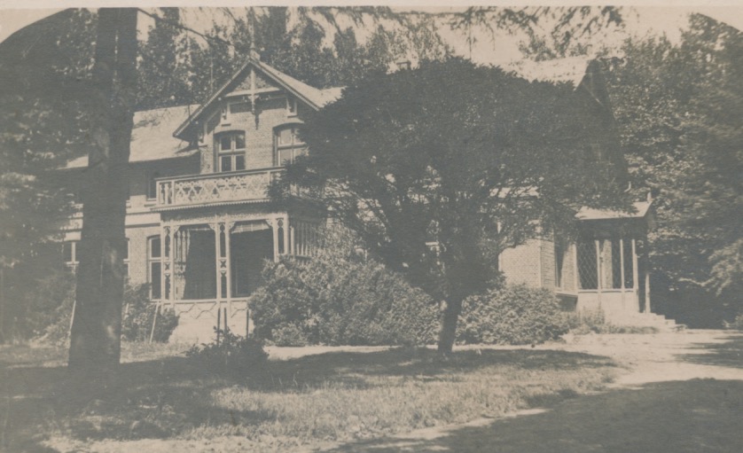 rijk versierd vrijstaand pand, met name de nok, balkonrand en uitbouw/serre/tuinkamer