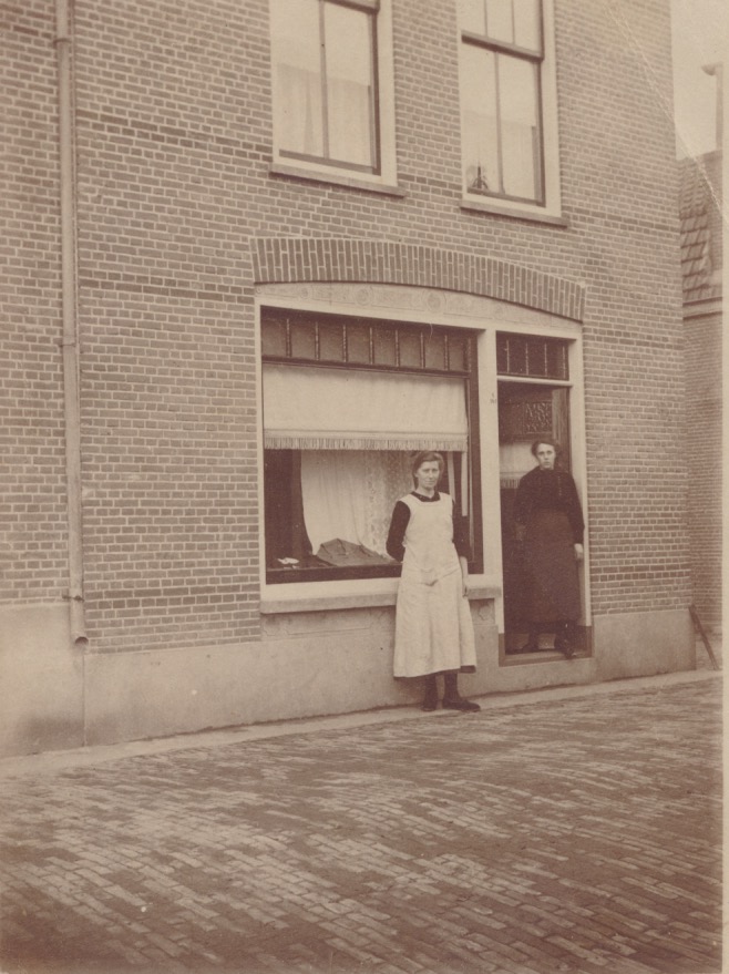 mogelijk een winkel in kleding, er ligt een bloes of overhemd in de etalage