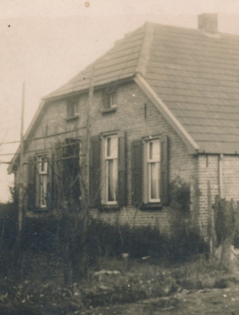voorgevel: laag raam, deur, wat hoger raam, laag raam
