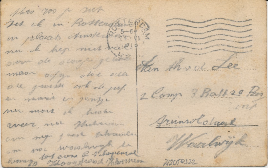 belijnde, gelopen fotokaart met zegel, stempel Rotterdam 1916