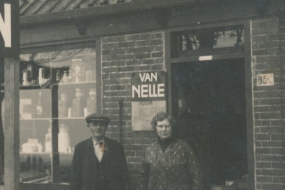 Het bijschrift bespreekt ook de kruidenierswinkel en noemt huisnummer 855.