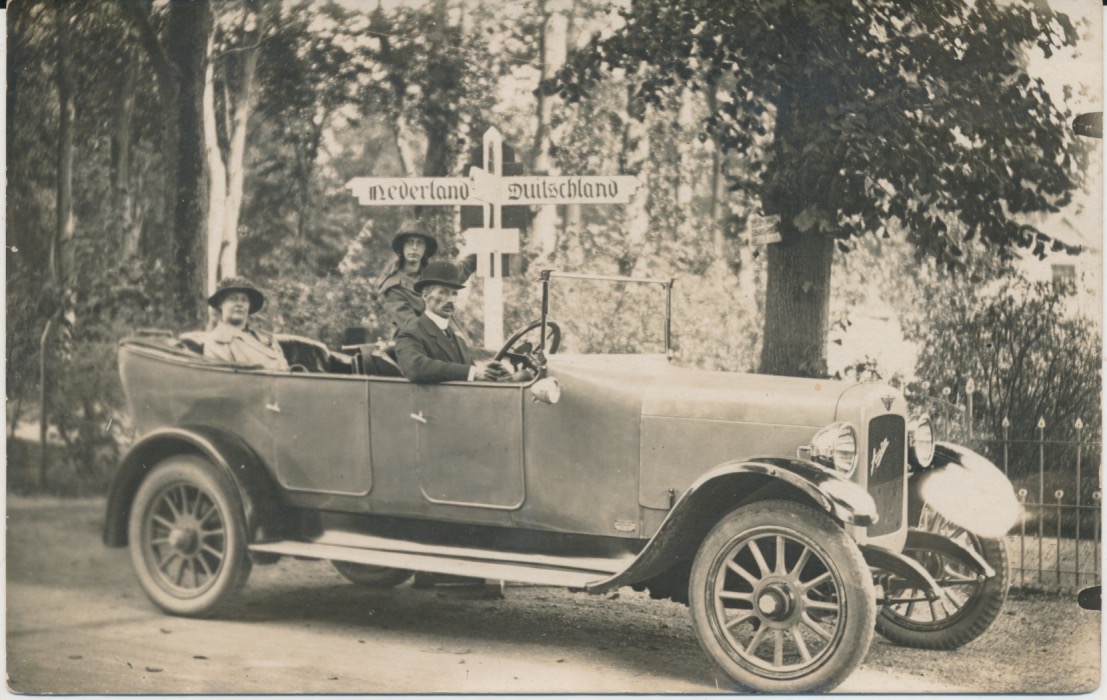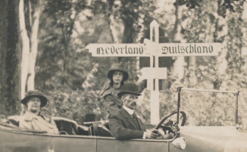 De wegwijzer geeft drie richtingen. Het ligt voor de hand dat de niet leesbare richting België aangeeft. Dit zou betekenen dat de auto bij het drielandenpunt op de Vaalserberg staat!