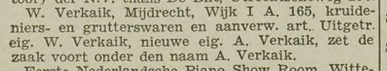 In ieder geval wel een winkelier Willem Verkaik daar, gehuwd met Willemijntje de Bruin.