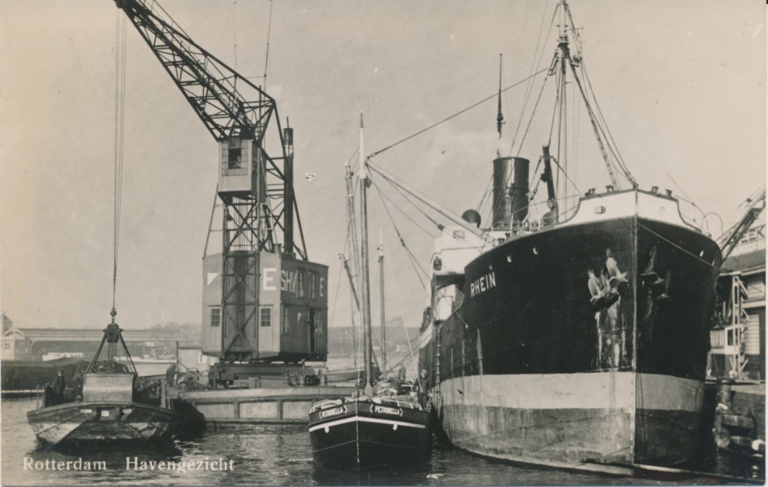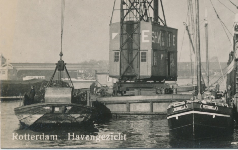 drijvende kraan van de SHV (Steenkolen Handelsvereniging) met nummer E