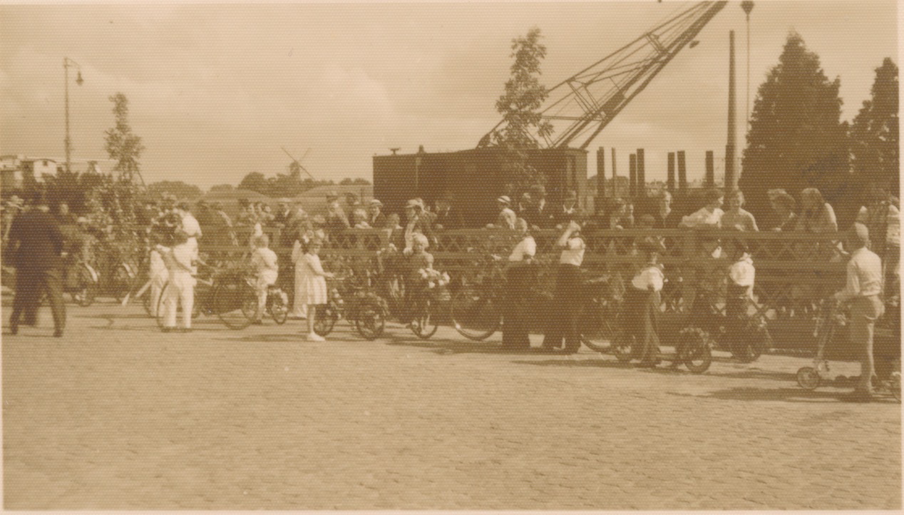 7625 hijskraan en kinderen met autopeds, molen