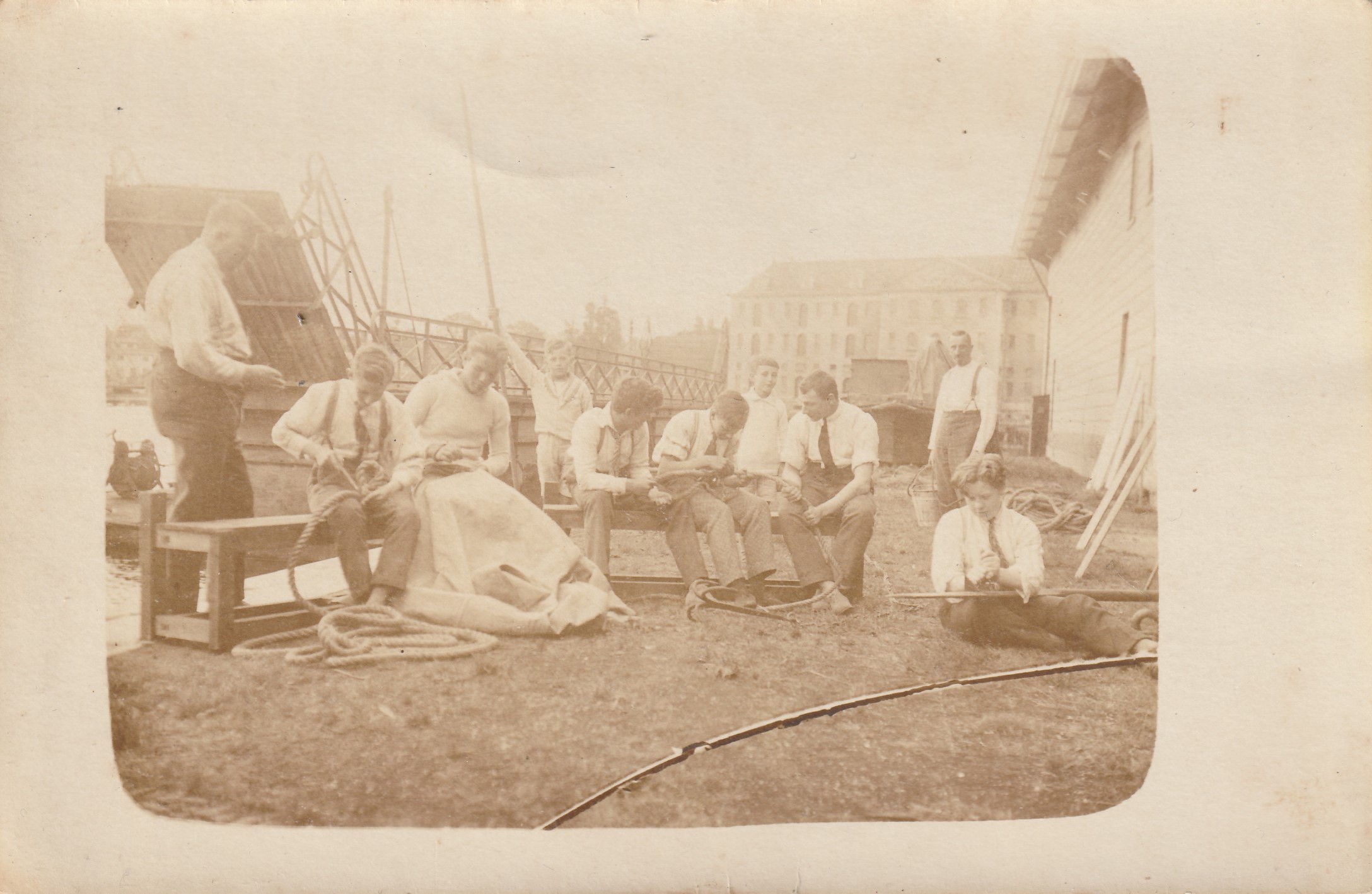 Op de foto van bijgaande link zijn alle items van de zoekplaatjes te zien: het Magazijn, het Matrozeninstituut (wat op veel foto's te zien is, maar niet specifiek benoemd) en de houten loods waarin de roeiboot naar binnen wordt geduwd. Aan de zijkant van die loods aan het linker uiteinde wordt touwgesplitst.