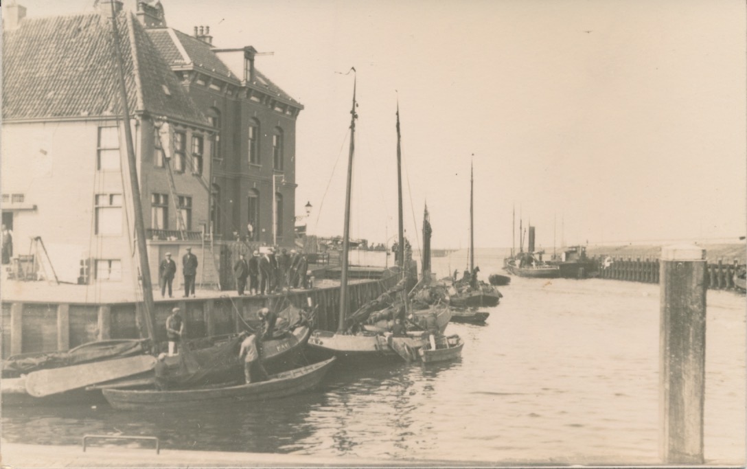 Dik, precies dat waar naar het zoeken was. Achter de 2 gebouwen nu het Havenplein, in het rechter pand met de toren nu een restaurant. Reuze bedankt.