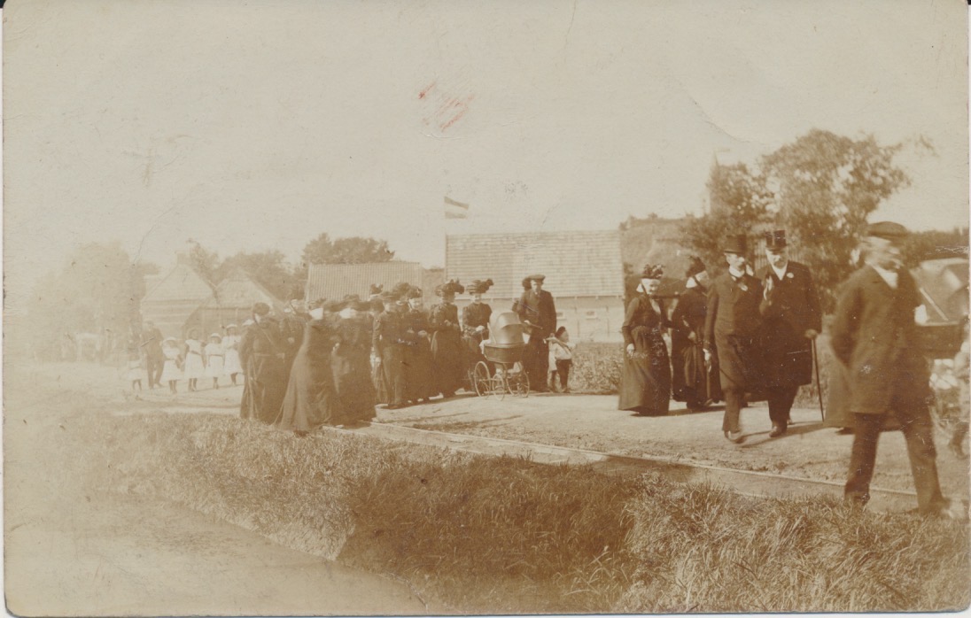 een aantal dames draagt een hoed op hun klederdrachthoofddeksel