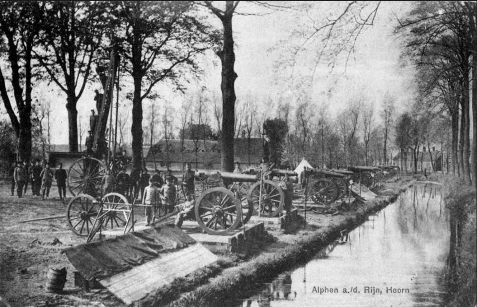 Maar een schietoefening met "kustbatterijen" over de oude Rijn lijkt me wel erg vreemd.