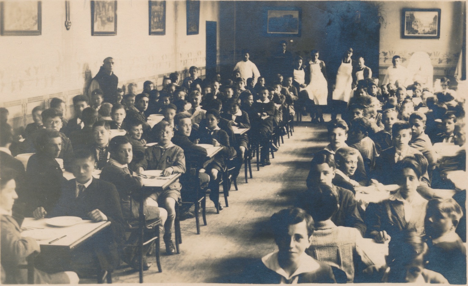 7848 eetzaal vol jongens + r.-k. geestelijke