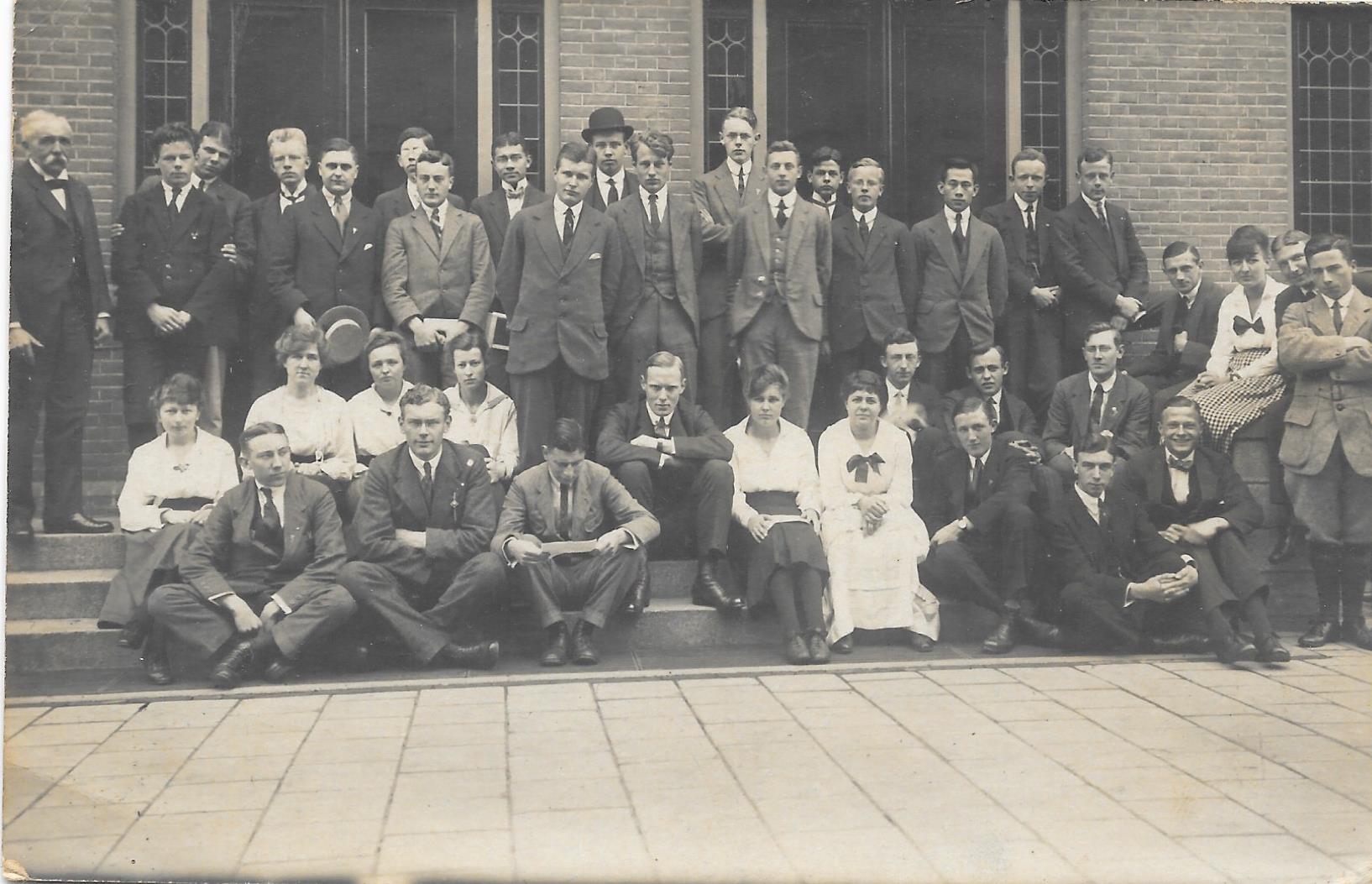 Het zou kunnen gaan om de achterzijde van de Hogere Handelsschool aan de Zijlvest 25a hoek Raaks. De school betrok dit pand in januari 1915. Dr. A. Borgman was directeur tot 1920. J. J. M. Noback was vanaf het schooljaar 1915 tot 1918 aan de school verbonden. Als deze namen werkelijk verband houden met de afbeelding zou deze dus tussen 1915 en 1918 moeten gemaakt moeten zijn. Maar nu nog de afbeelding. Heb geen betere bewijsfoto kunnen vinden.