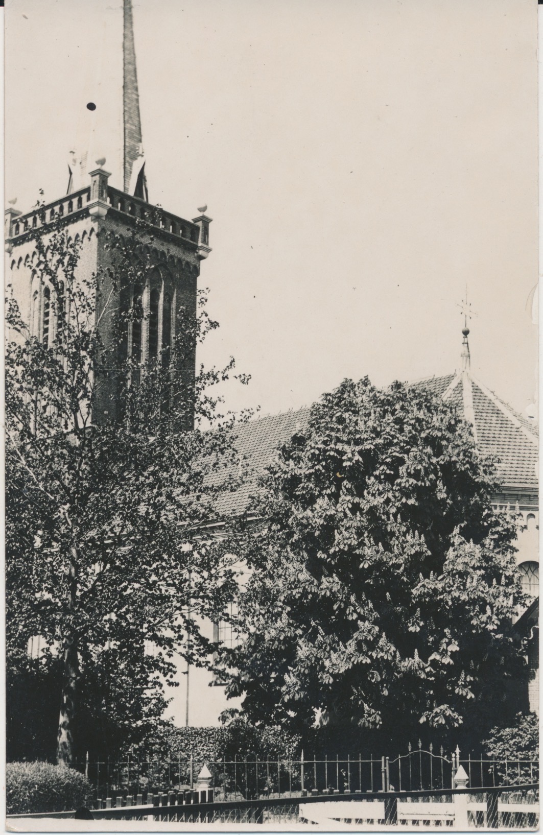 ook achterop een beschrijving van de geschiedenis van de kerk