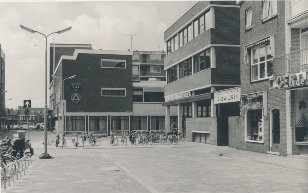 v.l.n.r. C.J.V., gemeentebibliotheek, brandstoffenhandel G. de Willigen, Ger de K...