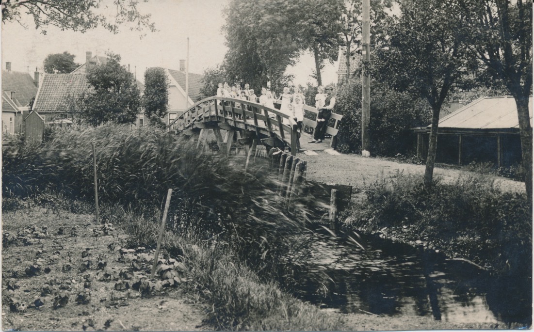 7974 houten bruggetje vóór wat huizen