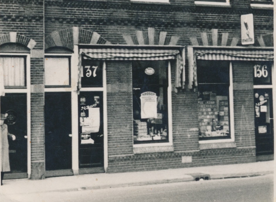 links op 137 een kruidenierswinkeltje en op 136 een tabakswinkel