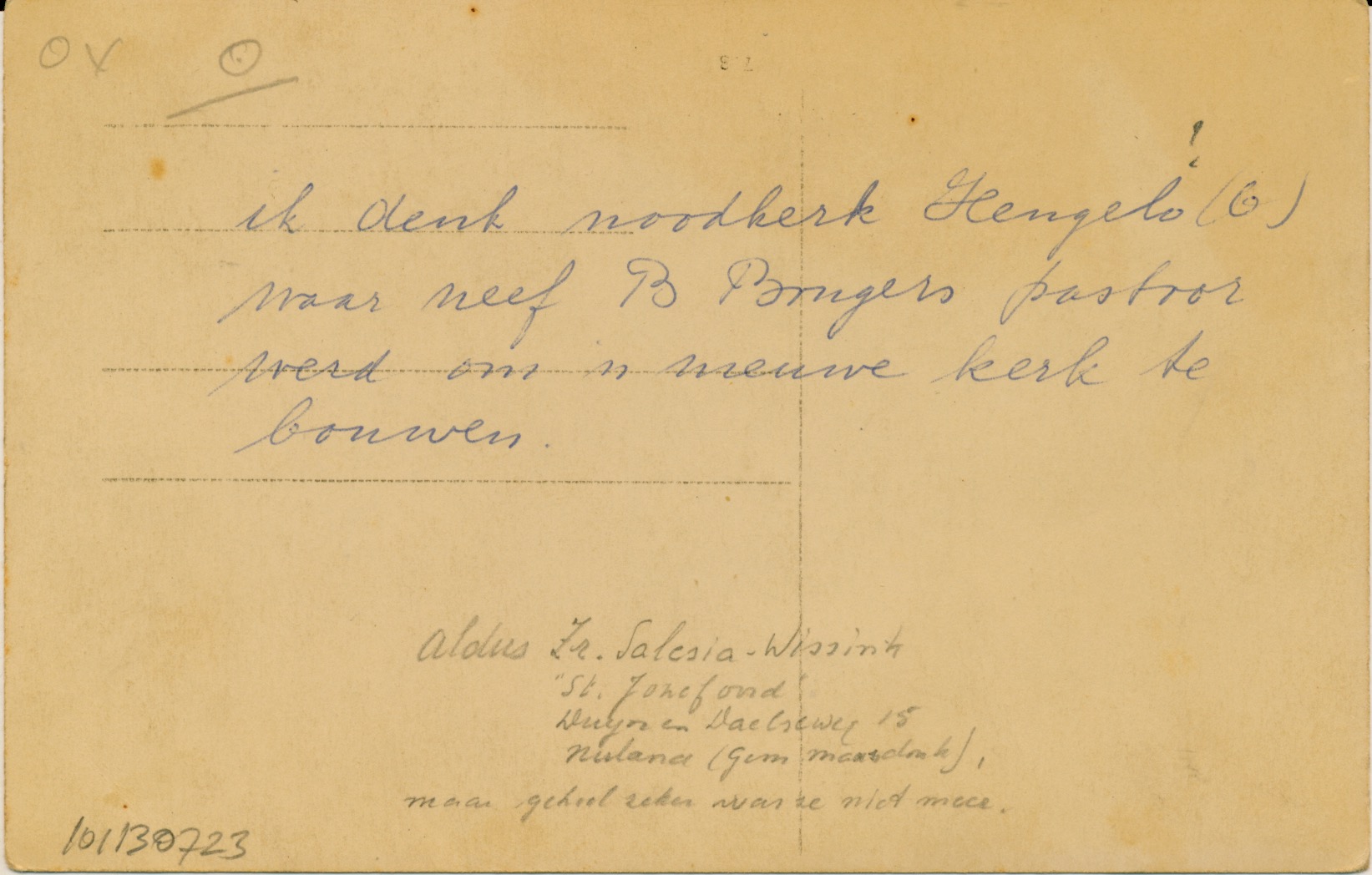 achterop: ik denk noodkerk Hengelo (G) waar neef B. Bongers pastoor werd om 'n nieuwe kerk te bouwen