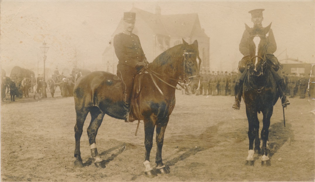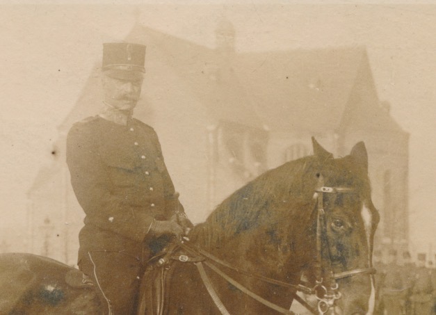 7948g militairen te paard voor [kerk?]gebouw - EJD