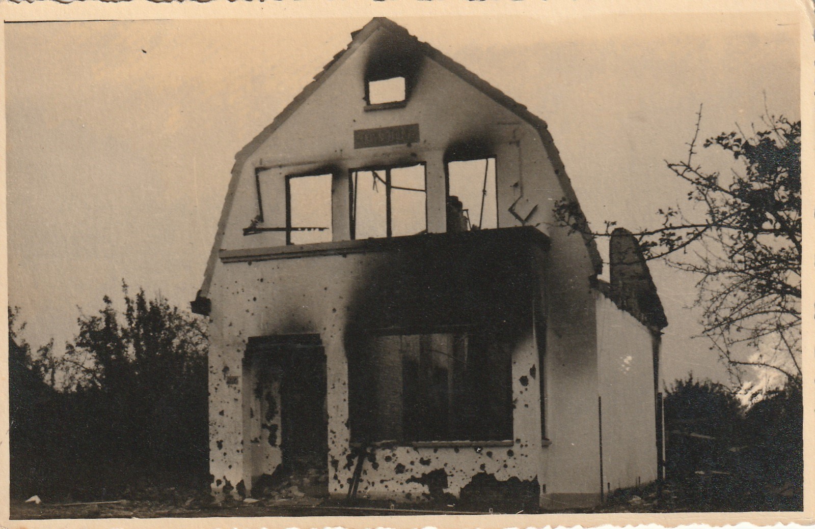 villa met Oorlogsschade? achterop staat Dorpsweg Gelderland 40-45