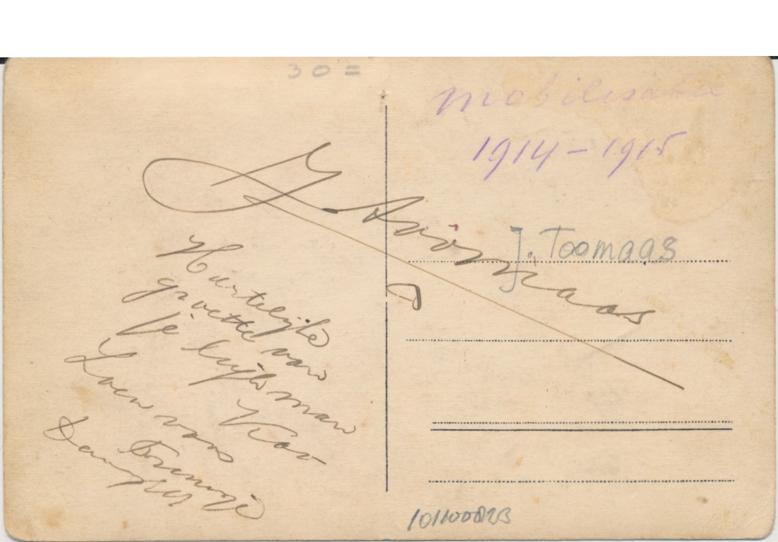 achterop J. Toomaas - mobilisatie 1914-1915