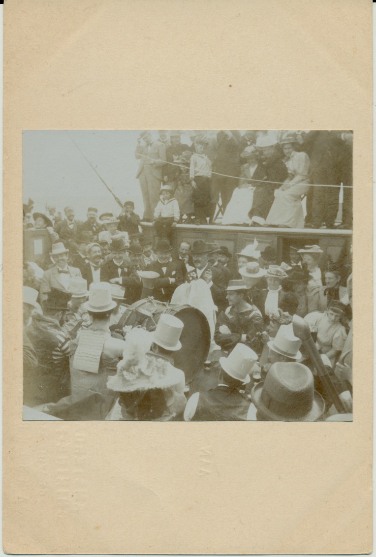 Re: 8304 muziekmakende, verklede groep bij schip
