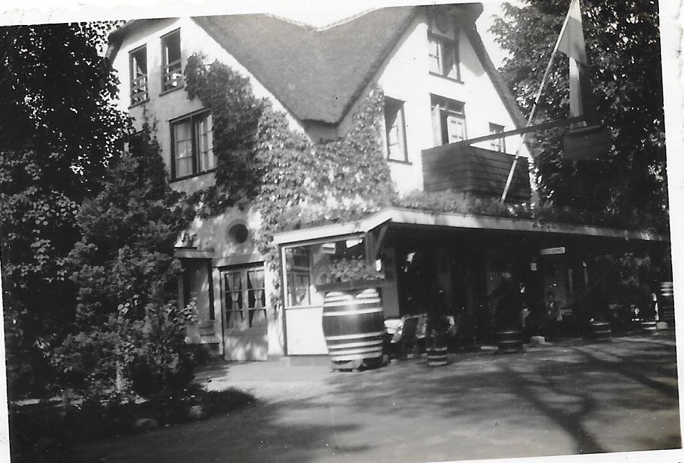 uitspaning ,,de .....,, naam staat op Luifel rieten dak