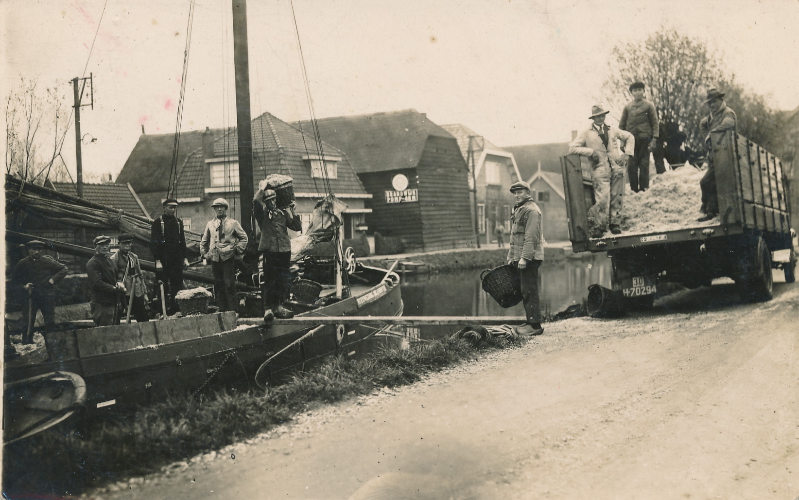Achterop staat geschreven: Schip “Nieuwe Zorg” uit Brandwijk. Eigenaar Cees v/d Berg. Op het bord op de schuur in het midden staat “Brandwijk Pomp 40M”. Waar is dit in Brandwijk?