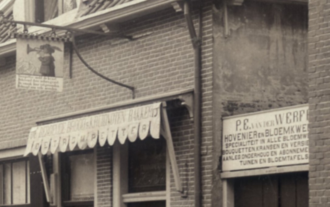 8263g straatbeeld, kwekerij (zie bord) en bakkerij Trompetter - JPNB