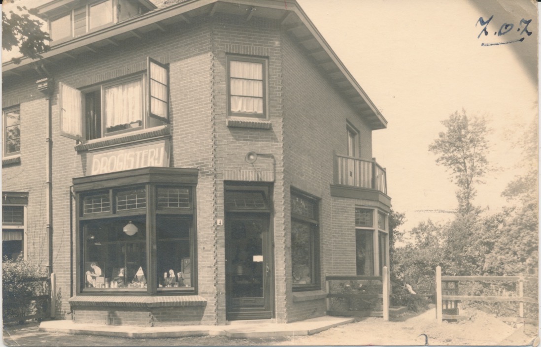 een drogisterij in een '20/'30-er jaren pand met huisnr. 4.