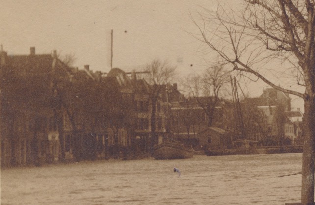 hoog water in haven en overtroomde havenkade