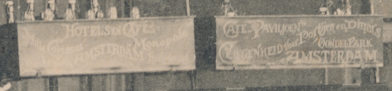 op het linker bord: Hotels & Cafés [Mille?] Colonnes Monopole Amsterdam