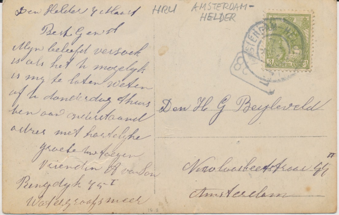 aanhef tekst: Den Helder, afsluiting tekst: Ringdijk 45-I, Watergraafsmeer