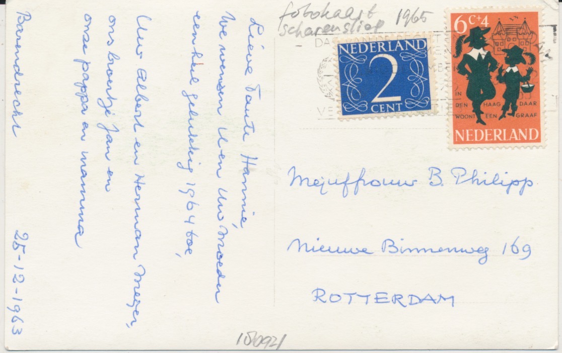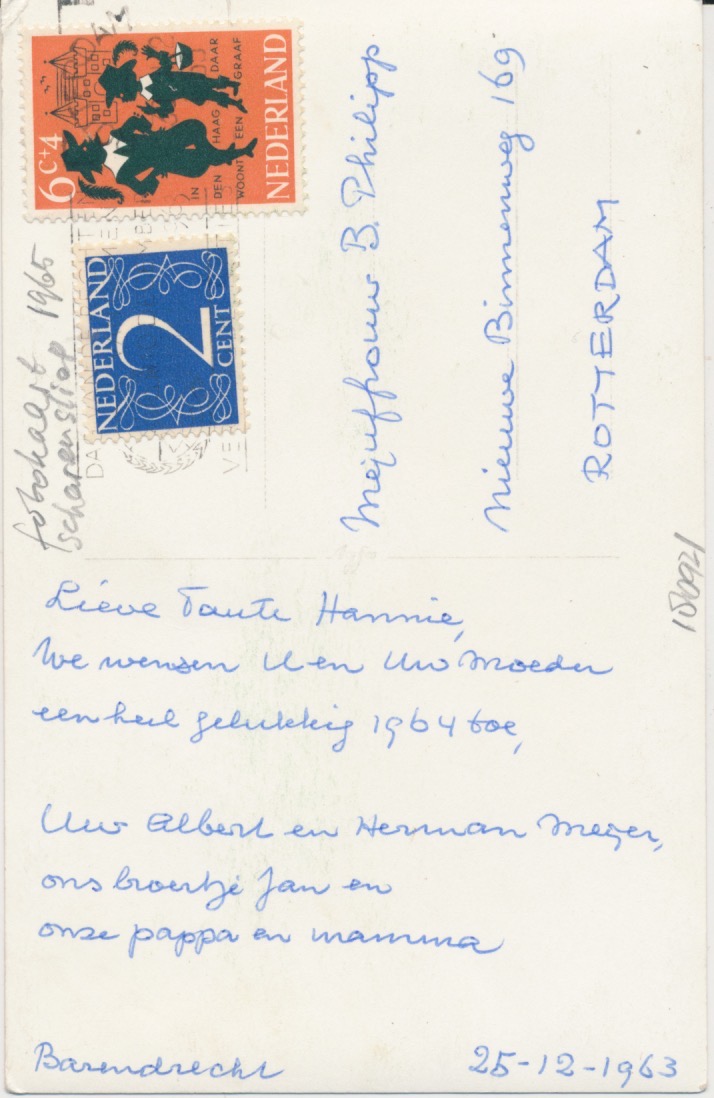 met zegel, stempel 1963, afzender pappa Meijer uit Barendrecht 25-12-1963