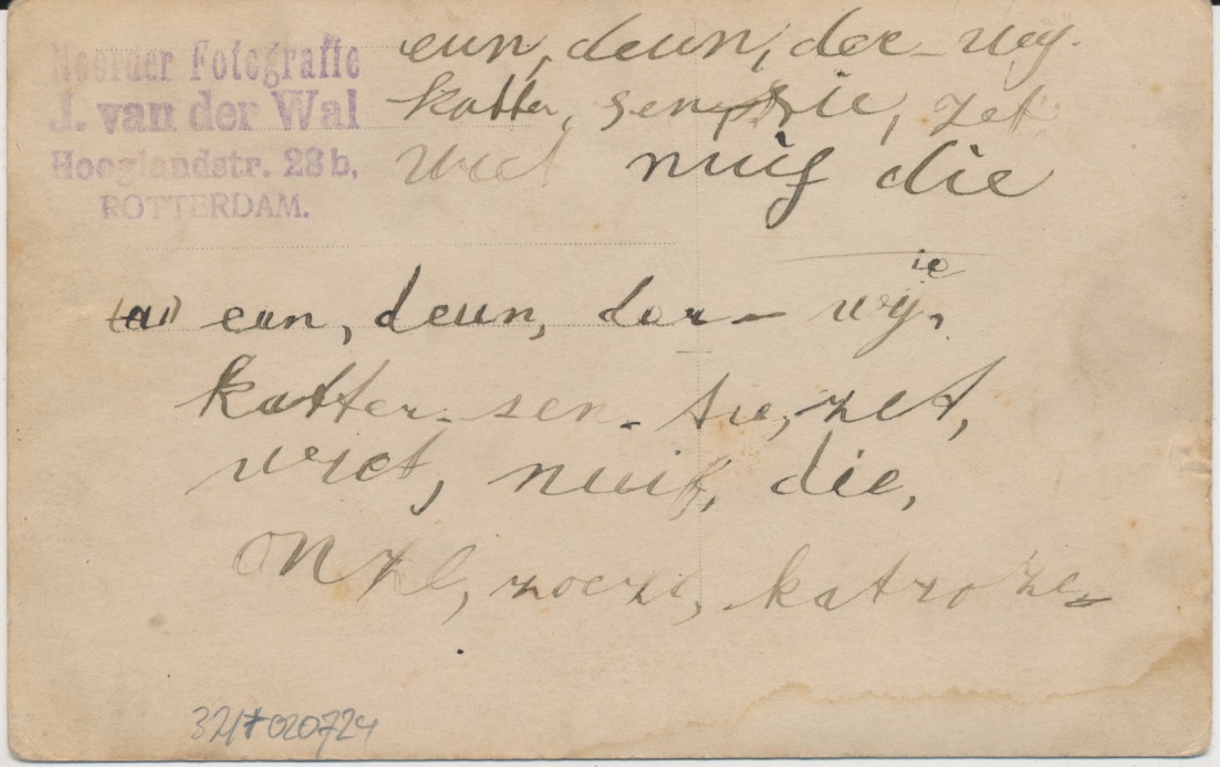 achterop het stempeltje van de fotograaf uit de Hooglandstraat, ligt in het noorden van het Oude Noorden
