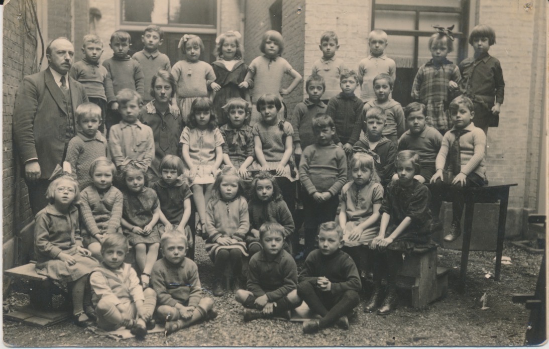 foto 2 is mogelijk een binnenplaats van de school met één onderwijzer