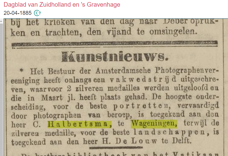 Zie ook vermelding 1886 https://www.delpher.nl/nl/kranten/view?cql%5B%5D=%28date+_gte_+%2201-01-1880%22%29&query=%22C.+Halbertsma%22+PROX+wageningen&coll=ddd&redirect=true&sortfield=date&page=2&identifier=MMTRES04:211280136:mpeg21:a00018&resultsidentifier=MMTRES04:211280136:mpeg21:a00018&rowid=5