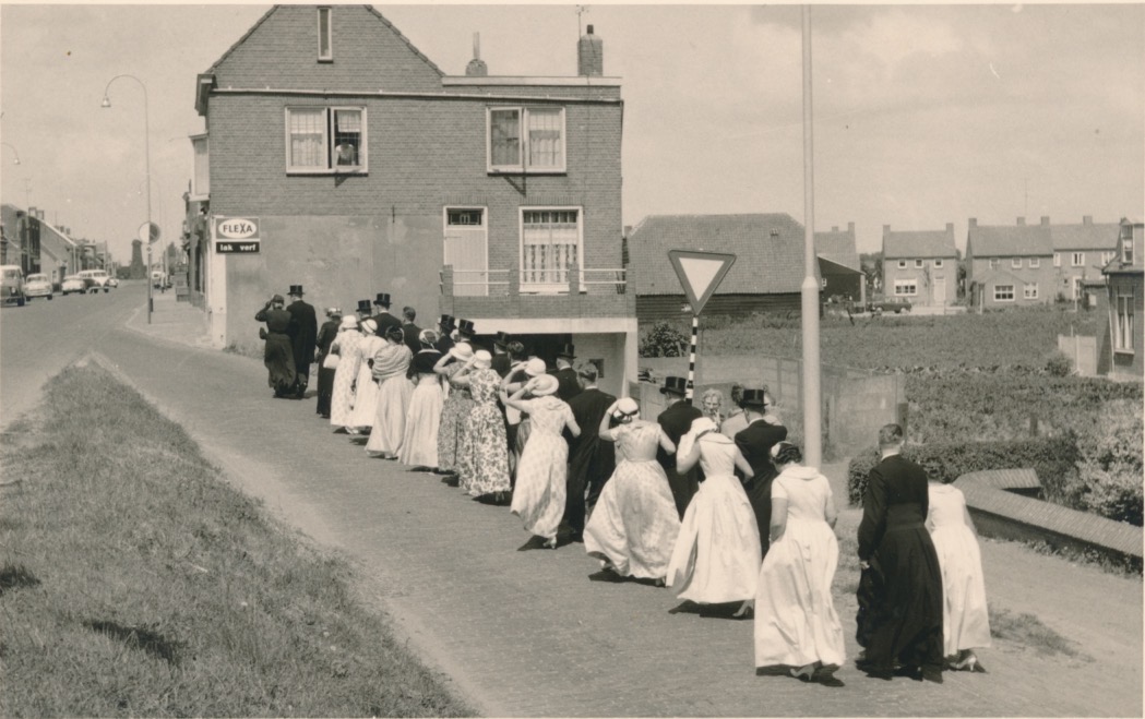 achterste persoon in zwart een r.-k. geestelijke of begrafenisondernemer?