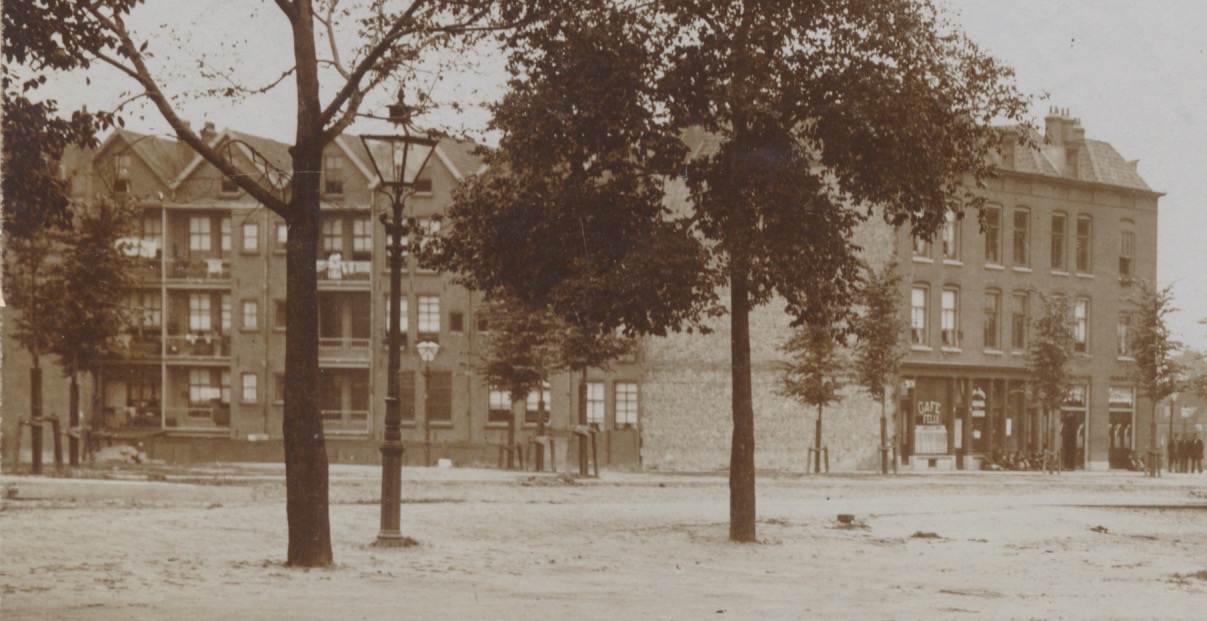 Valt mee Arnold. De huizen rechts staan op de hoek van de Doklaan, op de Doklaan nummer 9 zat vroeger een Café Felix.