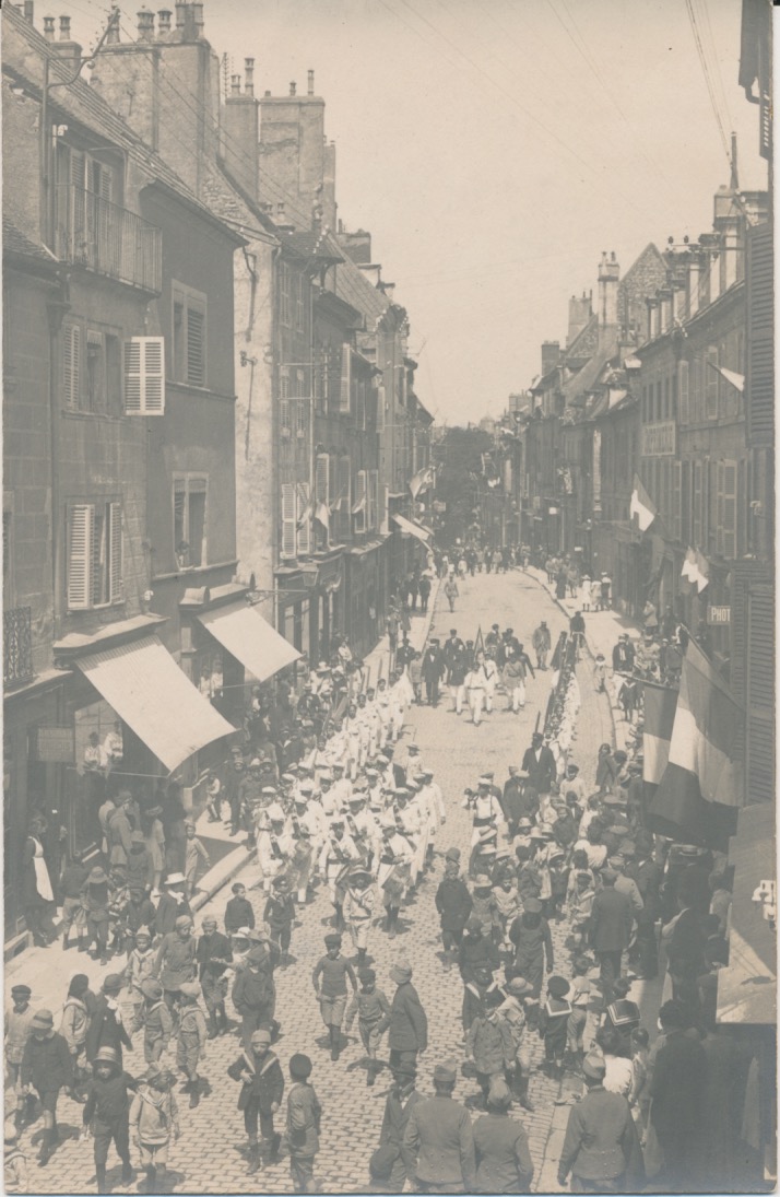 Re: 6700 straatgezicht met vlaggen en marcherende matrozen in grote stad