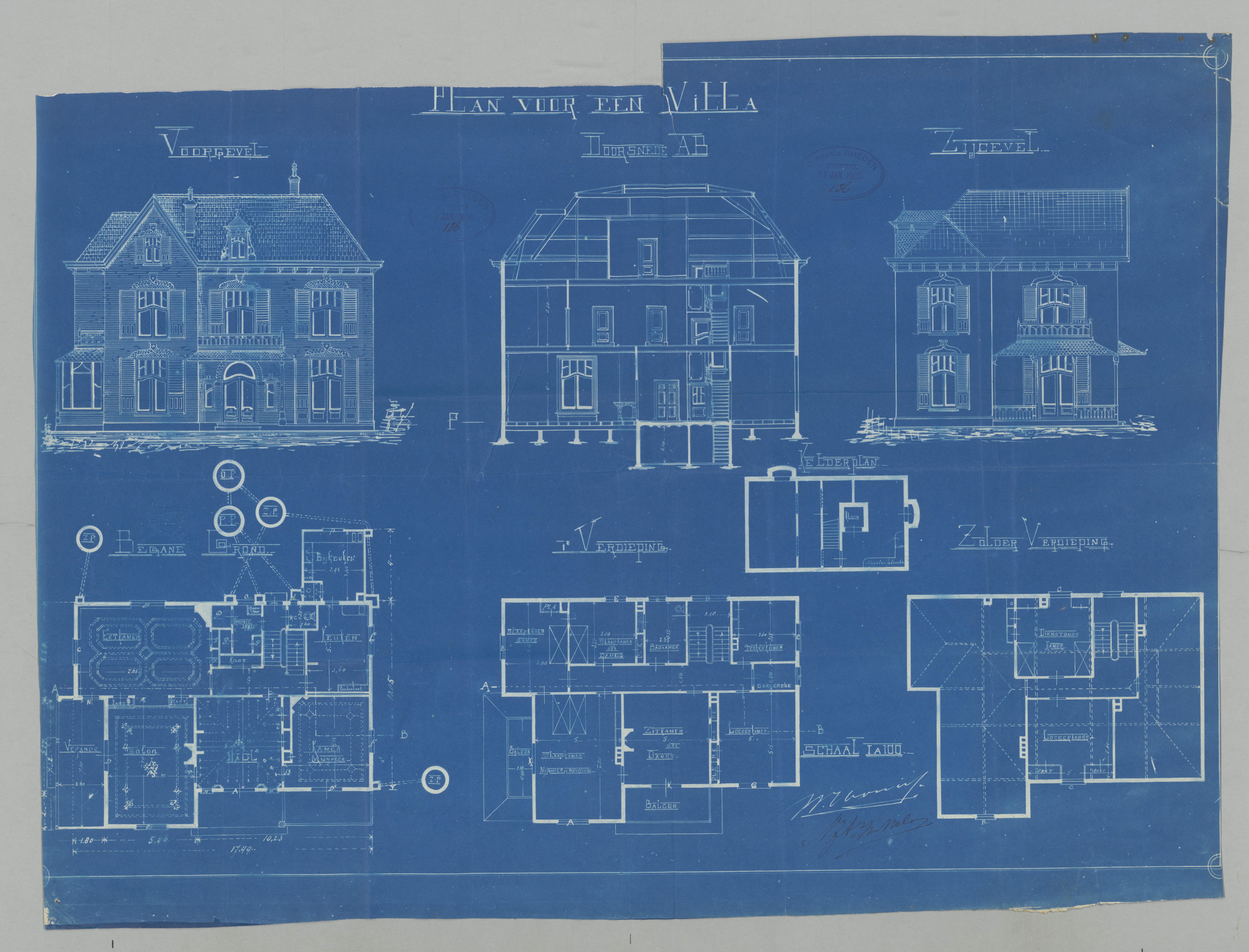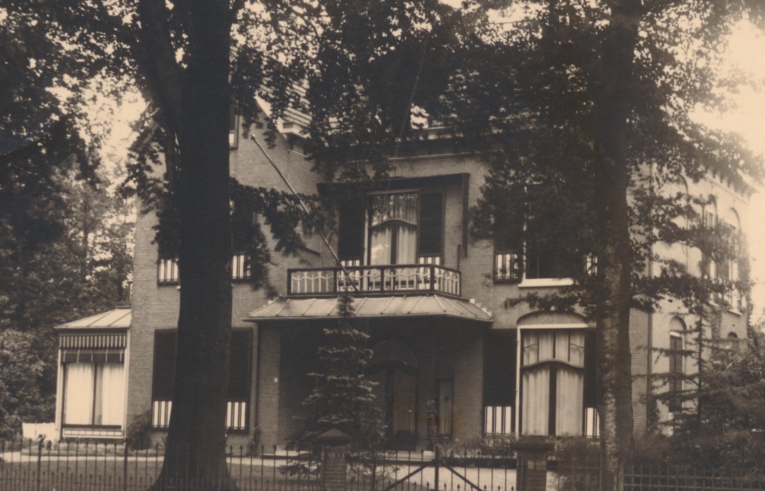 Geadresseerde (1 van de 2) lijkt me Carsten Wilhelm Thöne. Die was getrouwd met Geertruida Maria Rosalina de Vries van Doesburgh. Johan de Vries van Doesburgh (haar vader) zie ik terug in een villa Nuova in Velp. Die stond op de hoek van de Zutphensestraatweg 18 (hoek Biesdelselaan). Geen foto van gevonden (het pand schijnt 1963 te zijn gesloopt), behalve een bijzonder vage vlek hier: https://www.trolley-mission.de/nl/bl-co ... name-5.jpg (wit dak, ergens rechtsboven)). Het zou kunnen, maar veel vertrouwen heb ik er niet in.