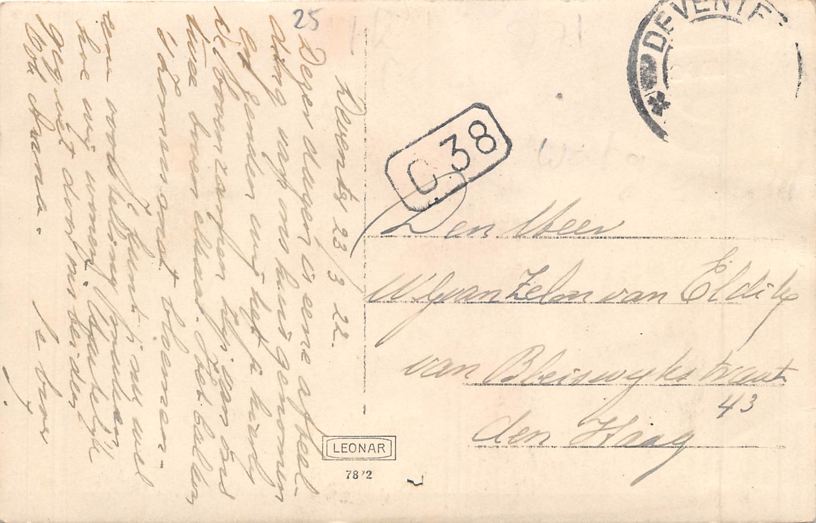 belijnde gelopen fotokaart, gestempeld Deventer 1922, maar wordt niet als Deventer herkend