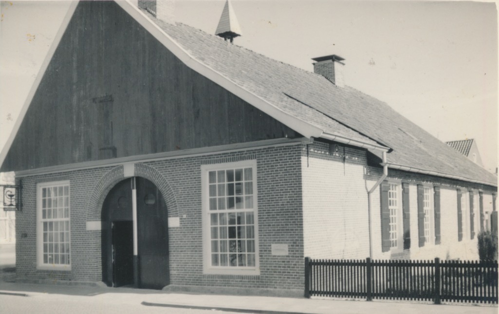 heeft iets weg van grote schuur, torentje, opvallend grote ramen