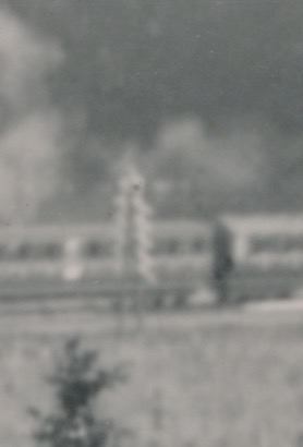 Dit is vermoedelijk een trein onderweg van Arnhem naar Zutphen; rechts dan een stukje Middachterallee tussen Ellecom en De Steegh, gezien van de Veluwezoom in de richting van Ellecom. Ik zie wel een hoog pand boven de bomen uitsteken, maar de foto is nogal onscherp. Er rijden enkele C10c rijtuigen mee: derde klasse met afzonderlijke coupédeuren en in het midden van het rijtuig een wit raampje waarachter een retirade.