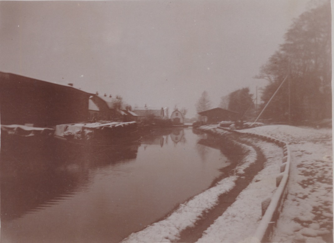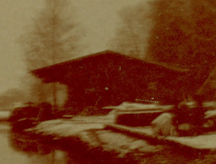 Het gebouw rechts op de achtergrond doet qua hoofdvorm denken aan een goederenloods van de Staatsspoor. Rechts zou dan een spoorweg kunnen liggen. Juist omdat het de SS betreft, is de loods van een veelgebruikt type met allerlei variaties in lengte. Enige contrastverbetering zou kunnen helpen omdat de loodsen in de loop der jaren op details van elkaar verschilden. Ook zou verbeterd contrast kunnen helpen om de mistige omgeving rechts te verkennen. Eventueel een lichtere afdruk kan ook al helpen.