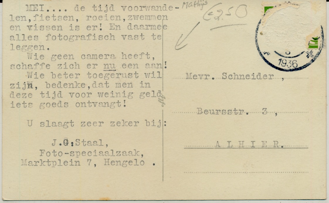 belijnde gelopen fotokaart, stempel 1936, op Agfa-fotokaartpapier