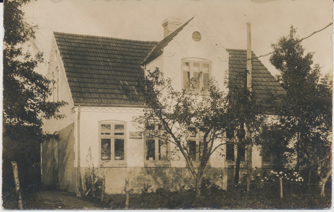 Het schild is waarschijnlijk dit https://www.flickr.com/photos/walter_johannesen/15132196045 en https://www.europeana.eu/nl/item/2058618/object_KUAS_22159194. Dan staat er Jydsk Telefon Aktieselskab en dat was de telefoonmaatschappij van Jutland.