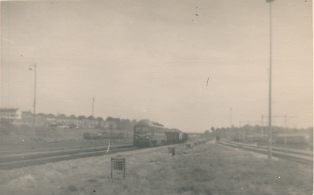 Dit is in Nijmegen, ten zuiden van het station, links de zogeheten spoorkuil, waar toen een goederenstation was. Nu staat daar nog het verlaten maar monumentale maar verlaten en verkommerde seinhuis nog, voor de bediening van de spoorweg Nijmegen - Venlo. Rechts het westelijke deel van de spoorkuil, nu opstelemplacement, toen onder meer het stoomdepot.