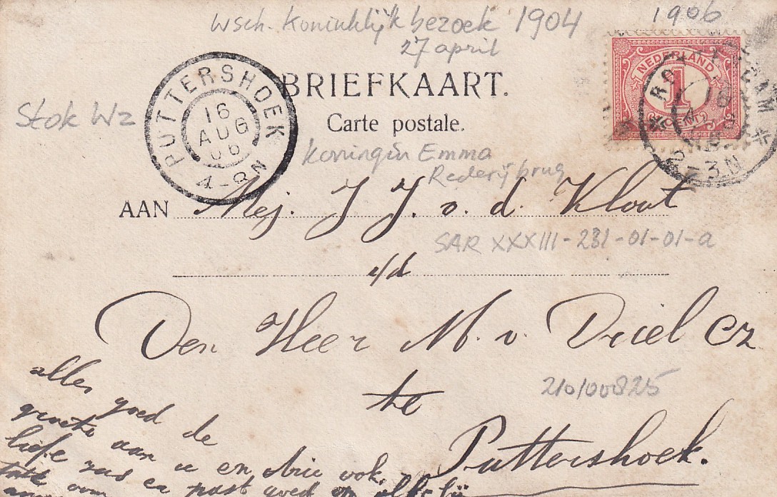 ik ben zelf al aan het zoeken geweest en zag op de beeldbank van het Stadsarchief Rotterdam dezelfde koets met koningin Emma met omschrijving Rederijbrug 27 april 1904, XXXIII-231-01-01-a