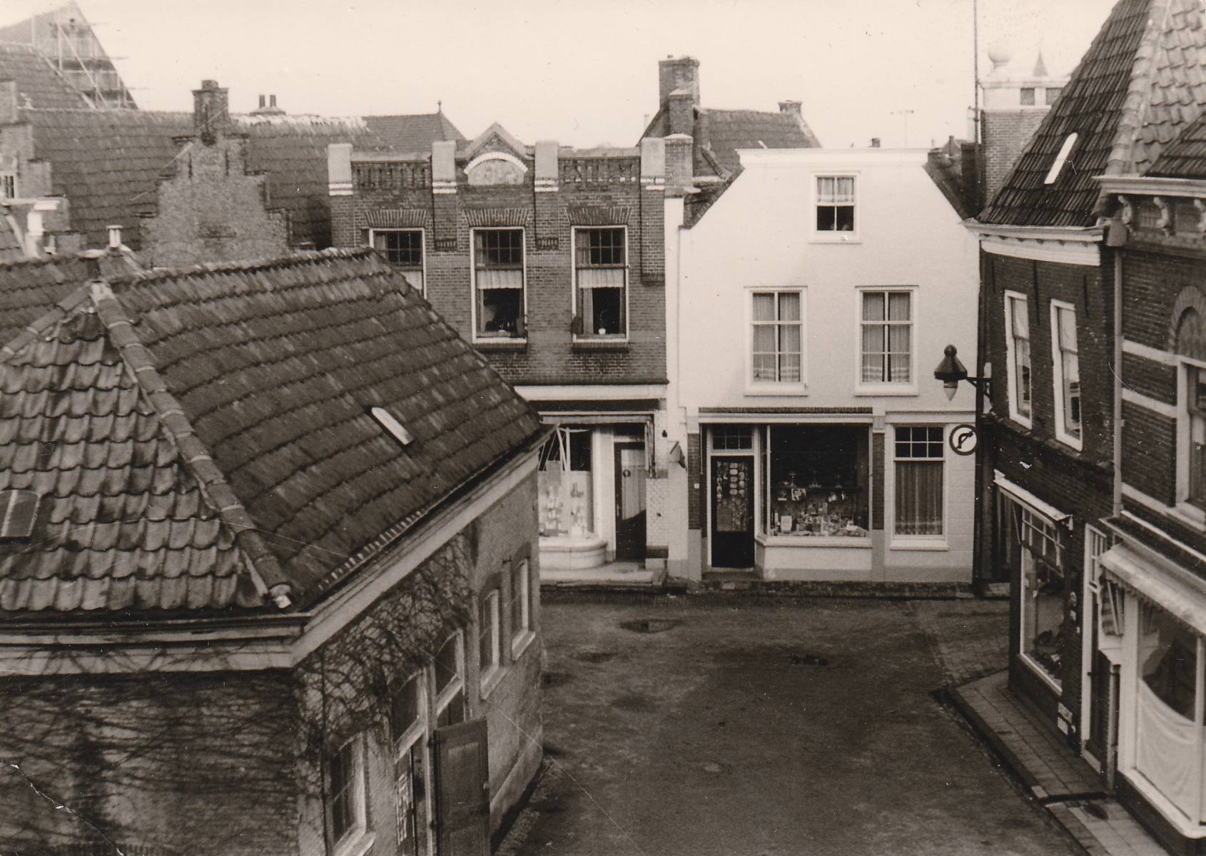 Dit is in Oudewater, vanaf de Visbrug richting Wijdstraat (links) en Peperstraat (rechts).